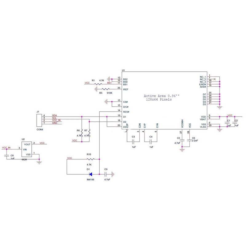 - 0.96 inch 128 x 64 OLED LCD display, I2C IIC or SPI optional