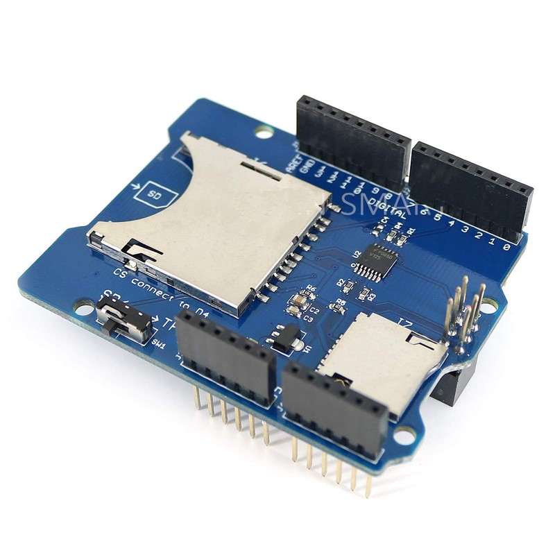 - This SD card shield is a standard SD card/TF card breakout board. The SD card protector adds storage space to your project.