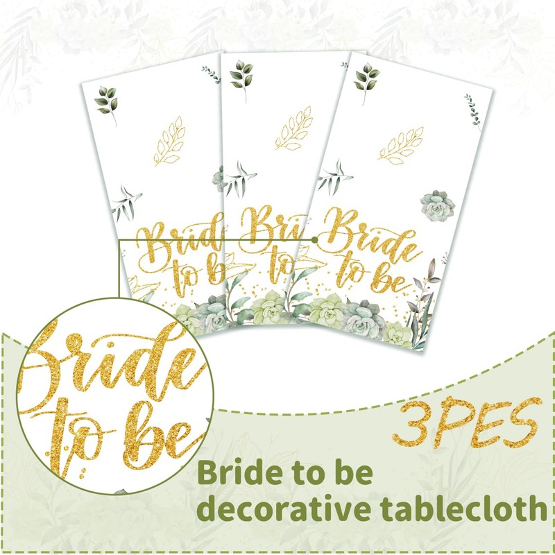 - Excellent Material: Our sage green bride to be tablecloths are made of high quality plastic material, odorless, waterproof, tear-resistant, reusable, the best choice for your bridal shower decorations. Bride to be tablecloths are perfect for adding bright colors to a bachelorette party or wedding party, making your bridal shower party more special, fun and impressive