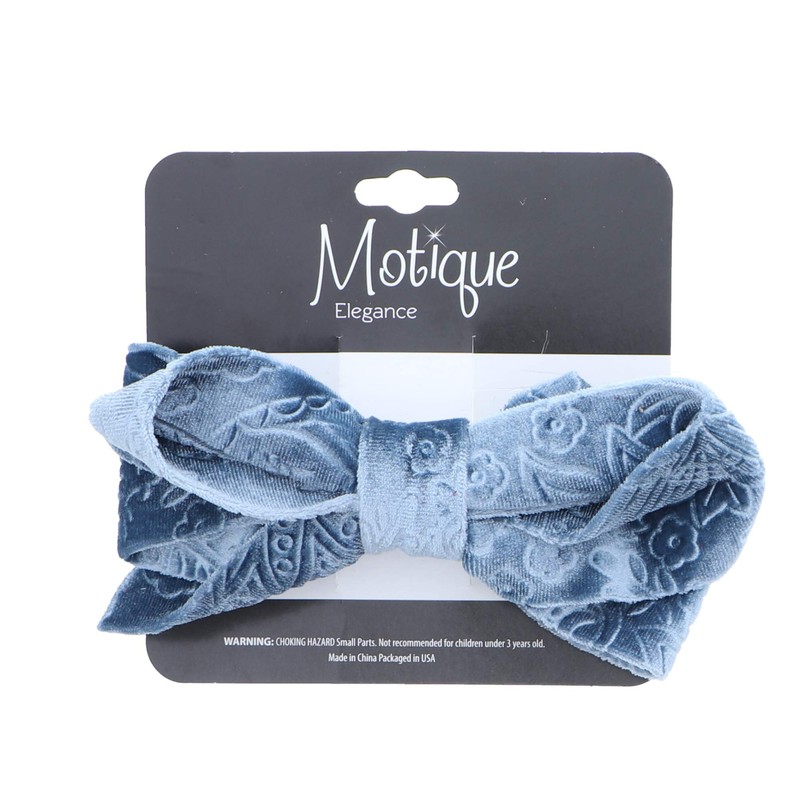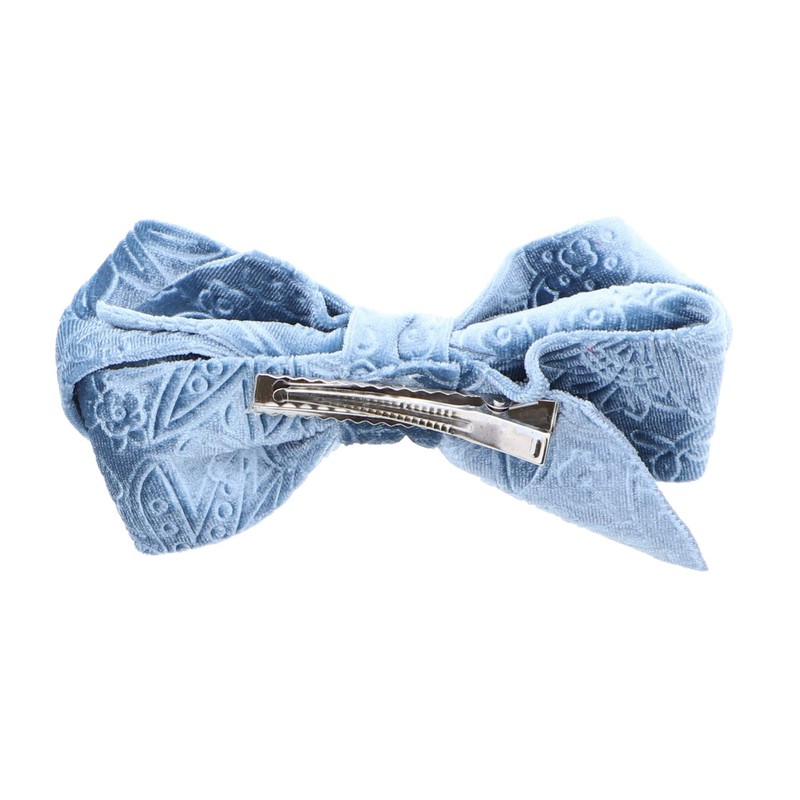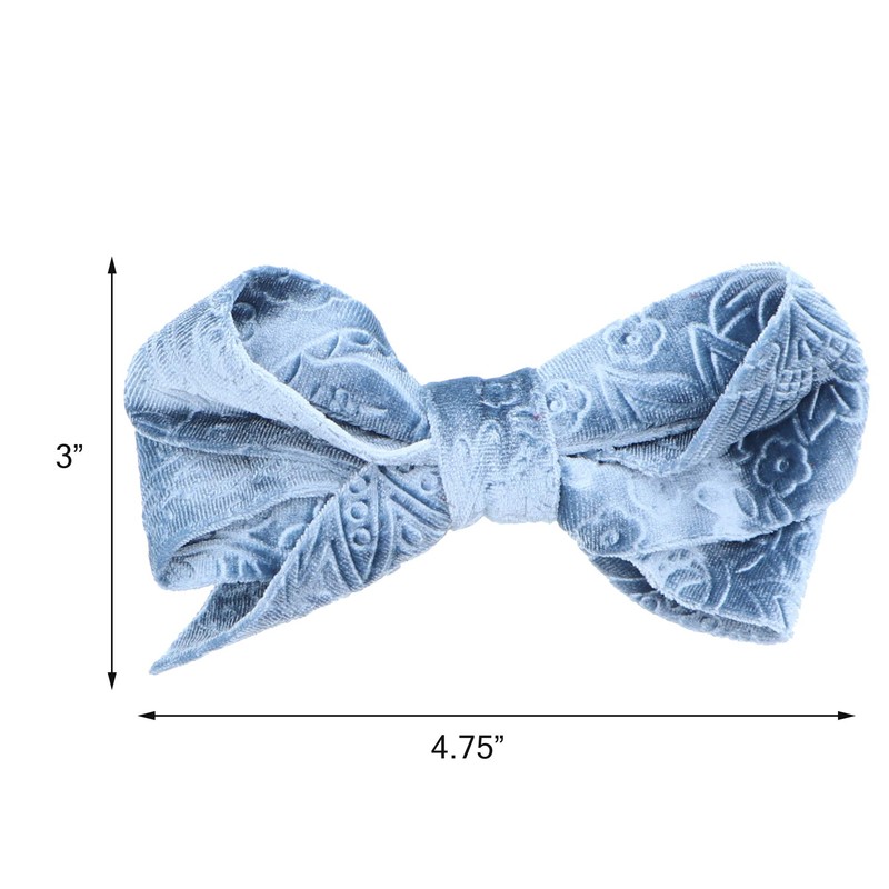Hair Bow Velvet With Design 4.75 Inch Blue