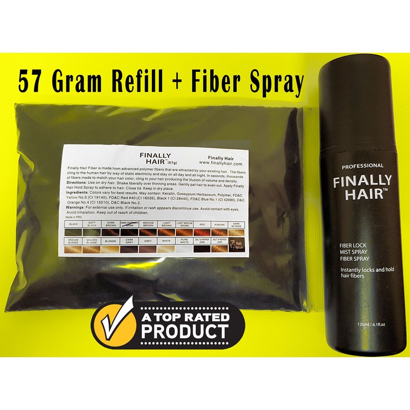 Hair Building Fibers Grey 50 Gram Refill Plus 4.1 oz. Strong Fiber Lock Spray - Refill Your Existing Bottle. Highest Grade Fiber By Finally Hair (Grey + Strong Spray)