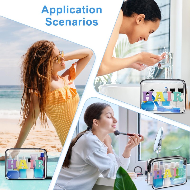 - Hair Care Makeup Bag:Double-sided printed, high quality coating, Lightweight cosmetic bag size - 7.5*2.4*5.5 inches/ 19*6*14cm. Made of quality PVC material, this zippered clear toiletry pouch is durable in quality, not easy to tear or break, able to support long-term use,nice for organizing and storing your daily necessities. It is convenient to take with you when traveling or going out.