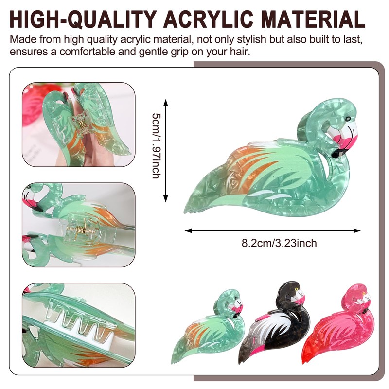 - Cute Flamingo Designs for Every Occasion: These fun and stylish hair claw clips come in a set of three, featuring charming flamingo designs that add a playful touch to any hairstyle.