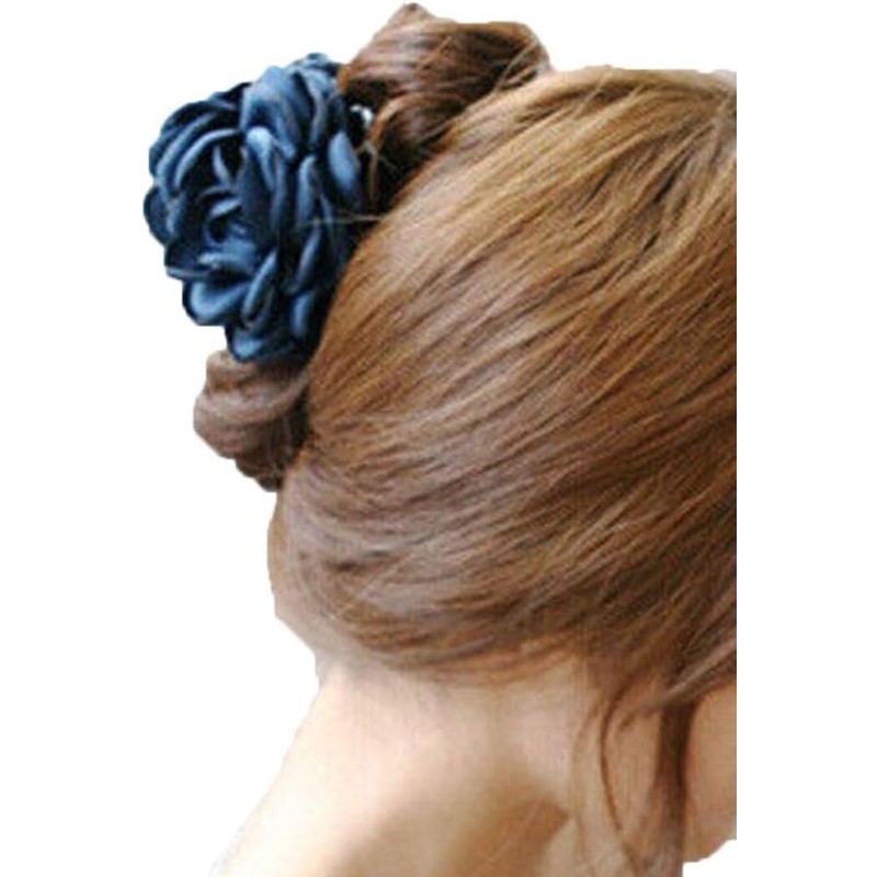Hair Claw Fashion Rose Flower Women Accessories Barrette (Big Red+Navy Blue, One Size)