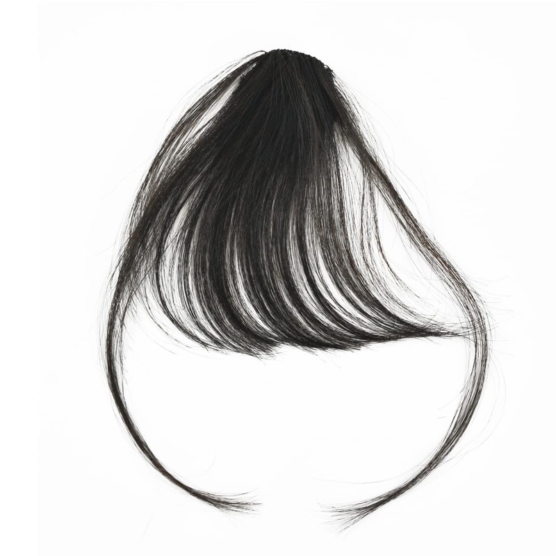 - SIZE:It's a Natural Black, 5 Inch long bang. The temples are 9 Inch long. This style is thin hair, giving people a refreshing feeling, is the most popular see through bangs.