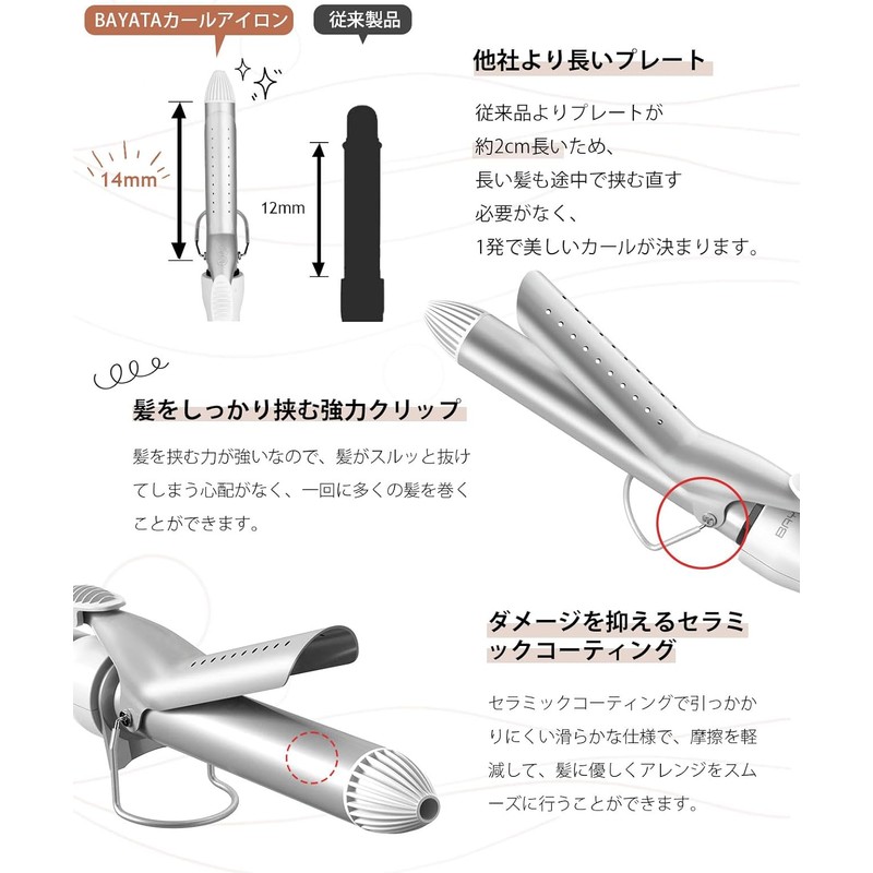 Hair Iron Curling Iron BAYATA Iron 25mm 25-level temperature adjustment Adjustable from 100℃ to 220℃ Professional specifications 100V-240V compatible overseas 60 minutes