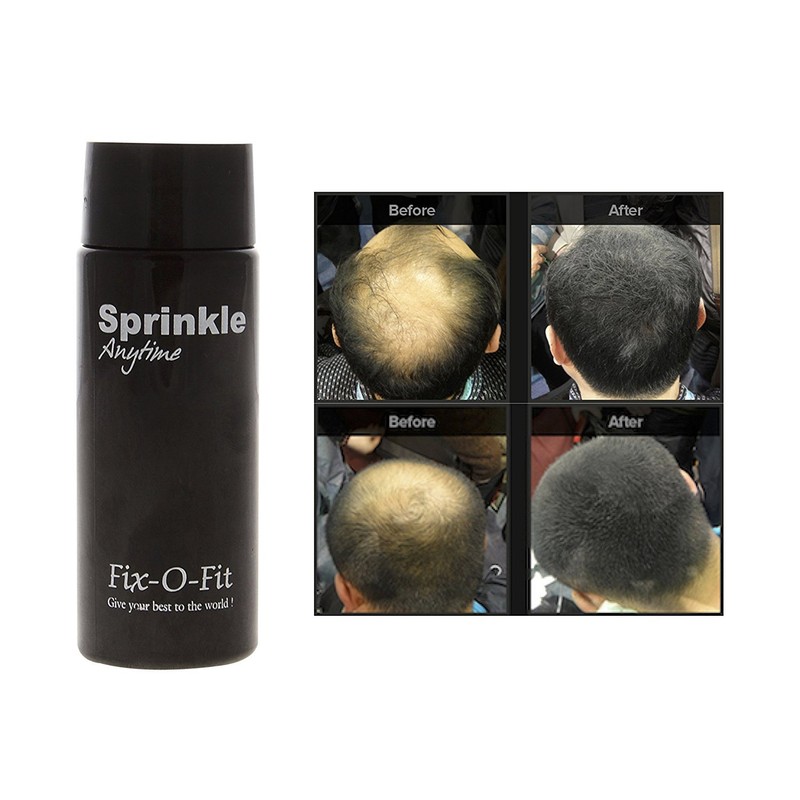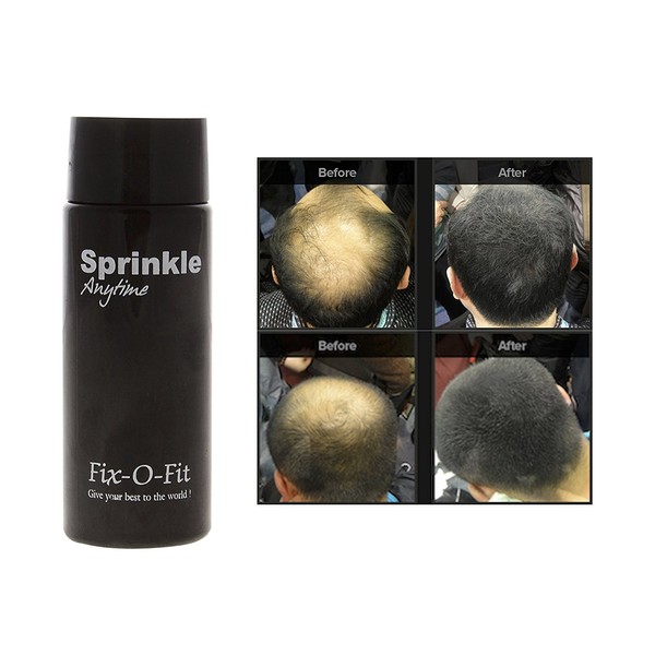 Sprinkle-Anytime: It contains miniature fibers that when sprinkled on the bald spots of the head get electro statically attached to your hair, thus giving a natural look to you just in an instant. It thickens and increases the volume near thin hair. It thus hides bare scalp from direct view.