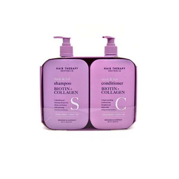 Hair Therapy Australia Thick & Full Shampoo & Conditioner Set | Biotin + Collagen | Deep Nourishing, Strenghtening, Softening, Purple