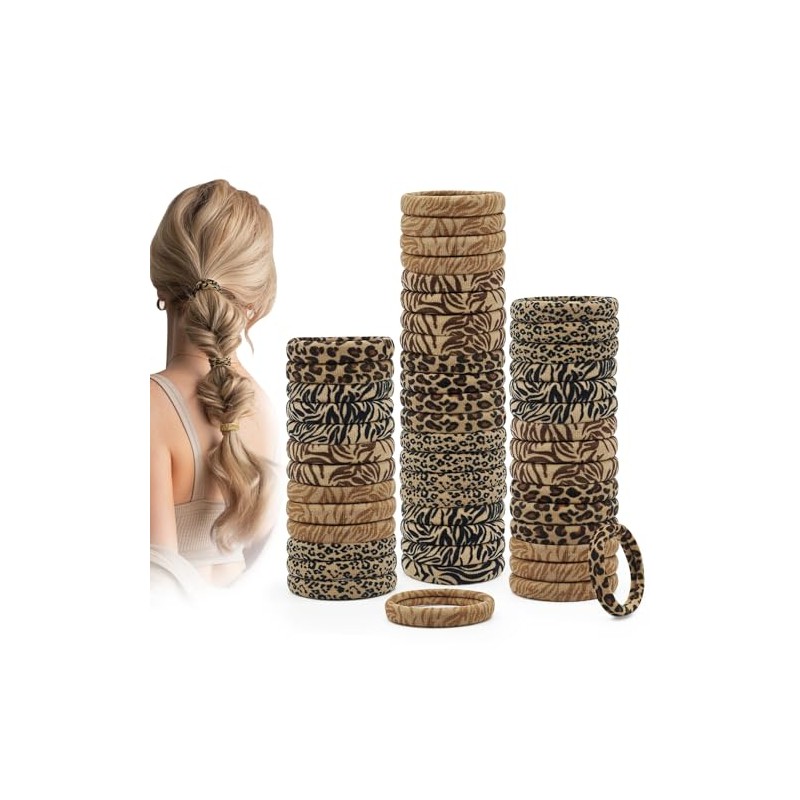 - Versatile leopard print hair accessories for stylish looks: This set includes 100 hair ties featuring five chic leopard print styles and one classic solid black option, offering endless styling possibilities. These versatile shades effortlessly complement any outfit, allowing you to create fashionable ponytails for any occasion—whether casual outings or formal events. Enjoy unlimited styling creativity and express your unique sense of fashion with these trendy and functional hair accessories.