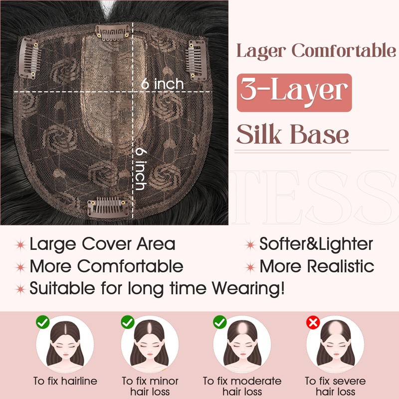 - 【Comfortable 3-Layer Silk Base】 Upgrade your comfort with our innovative 3-layer silk base, designed to provide unparalleled softness, thickness, and durability. This extra-breathable hair toppers ensures a lightweight, irritation-free wear, transforming your hair topper experience.