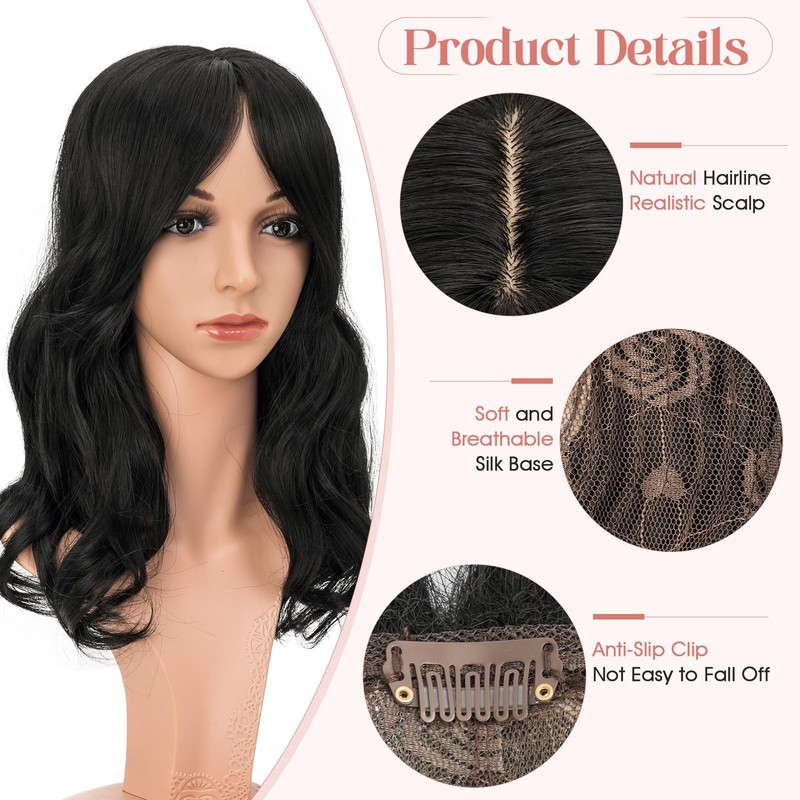 Hair Toppers for Women 18 Inch 360° 3D Cover Hair Topper with Bangs Toppers Hair Pieces for Women Clip in Bangs Clip in Hair Toppers for Women with Thinning Hair (Black)