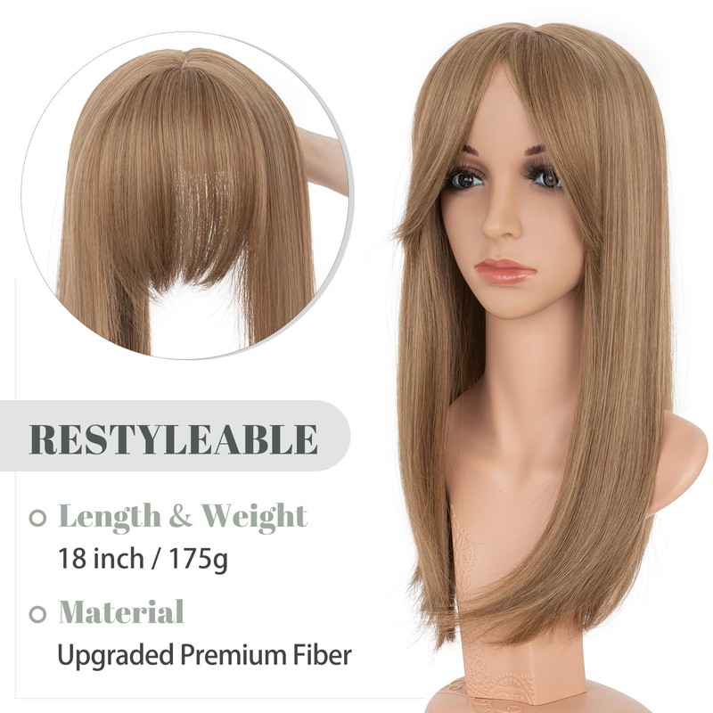 Hair Toppers for Women with Thinning Hair 18 Inch Toppers Hair Pieces Straight Wiglets with Bangs 6"x6" Lace Base Clip in Synthethic Hairpieces Brown Mixed Blonde