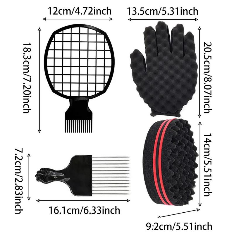 Hair Twist Curl Comb Sponge Glove Set, 4 Counts/set Flexible Styling Tool Set, Heatless Styling Tool, Personal Haircare Accessories