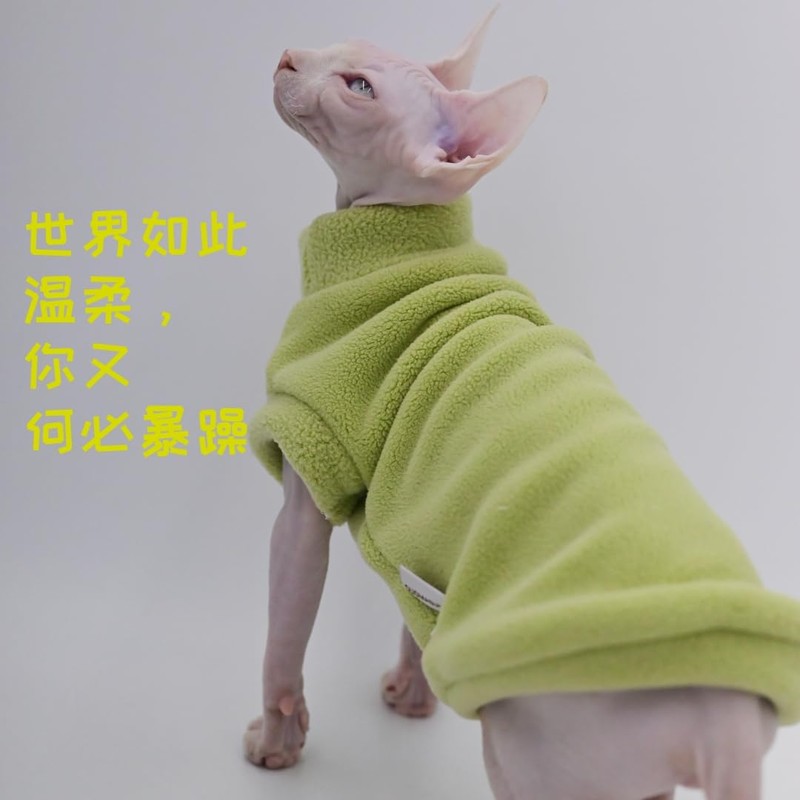 Hairless Cat Clothes Autumn/Winter Warm Fleece Super Soft Stretch Cat Clothes for Sphynx,Devon, Konis,Small Cats and Dogs (Green, Medium)