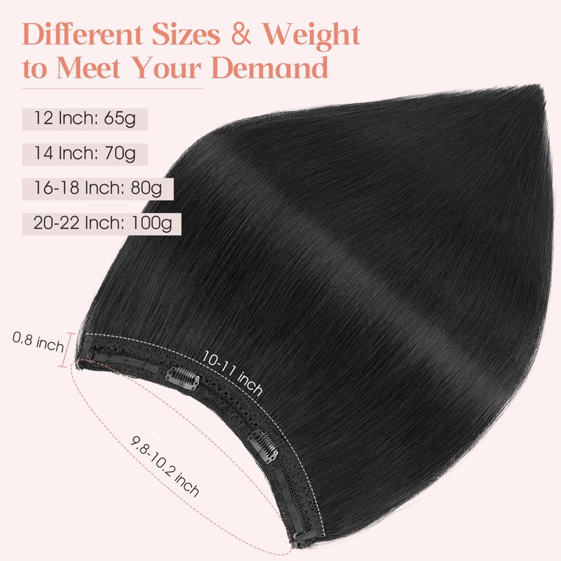 Hairro Wire Hair Extensions Human Hair, Fish Line Invisible Adjustable & Clips in Extensions Straight, 100% Real Hairpieces Seamless Blending for Women, 12 Inch 65g Jet Black