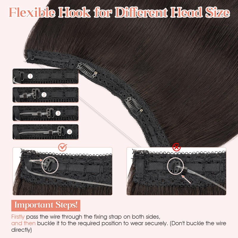 Hairro Wire Hair Extensions Human Hair, Fish Line Invisible Adjustable & Clips in Extensions Straight, 100% Real Hairpieces Seamless Blending for Women, 20 Inch 100g Natural Black