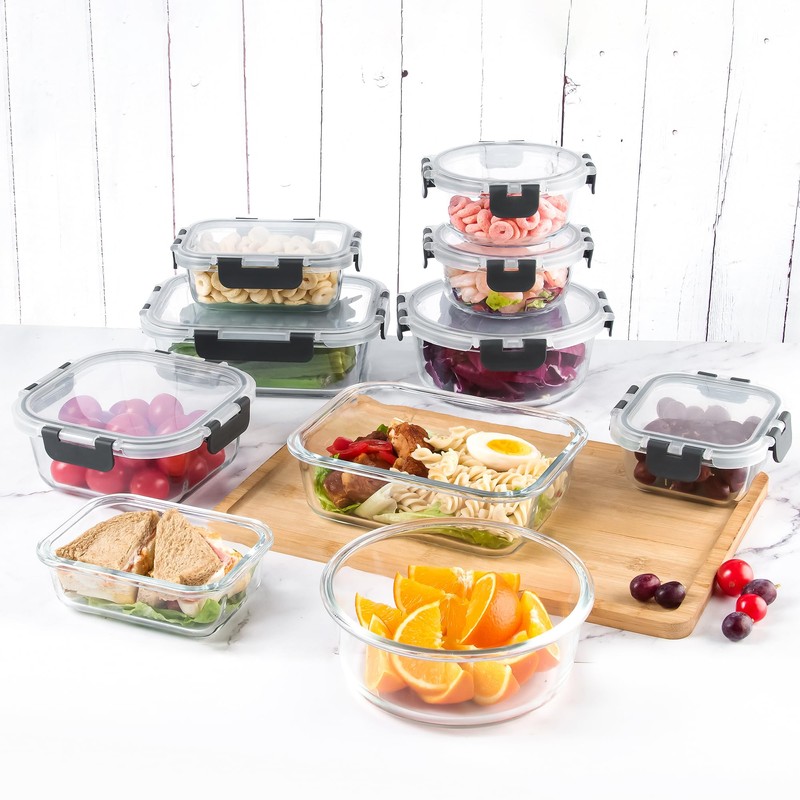 - AIRTIGHT GLASS STORAGE CONTAINERS FOR FRESHER FOOD: The airtight silicone seal and locking lid mean you can use them for a snack or sauce container without odors and air, keeping food fresh. With the stackable design, these containers can be stacked well. Our meal prep containers take up minimal room for the kitchen.