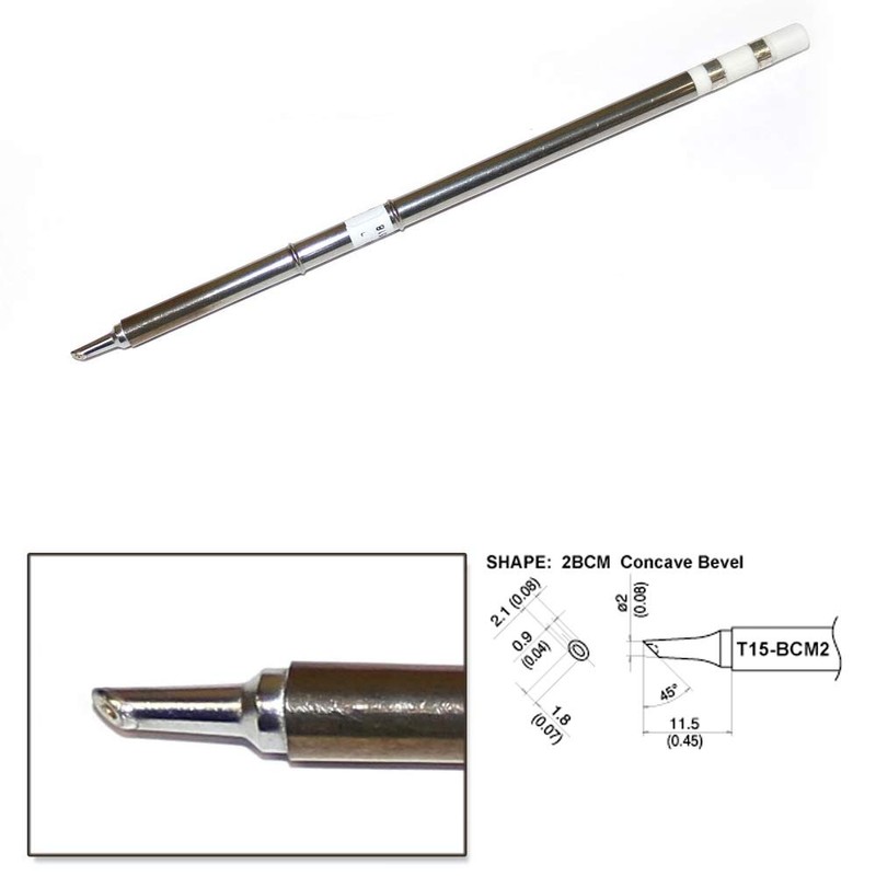 • T15 Series Soldering Iron Tip, ‘BCM’ Hollow Bevel shape 2mm/45° x 11.5mm