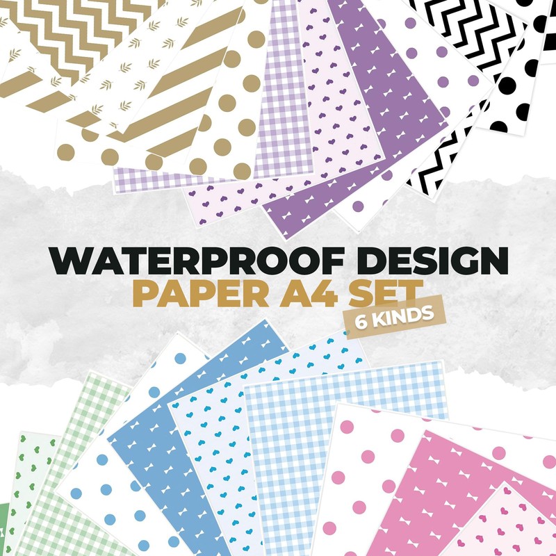 Hakua Design Waterproof A4 Paper Set (6 Patterns) Colorful Paper, Pattern Cardstock, Colored Copier Paper, and Cute Stationery Paper (Gold)
