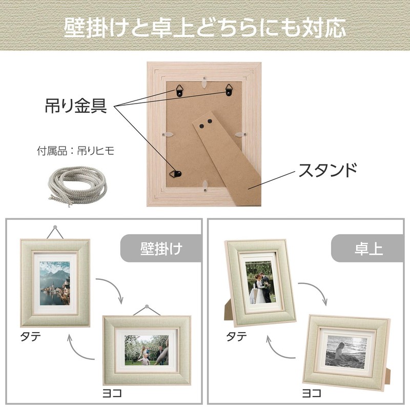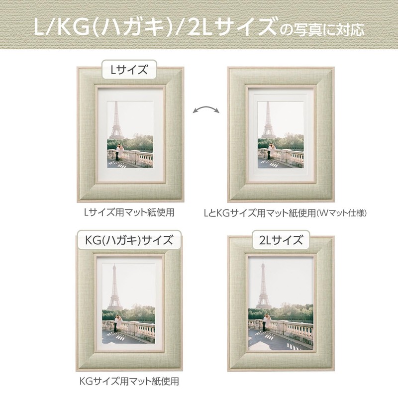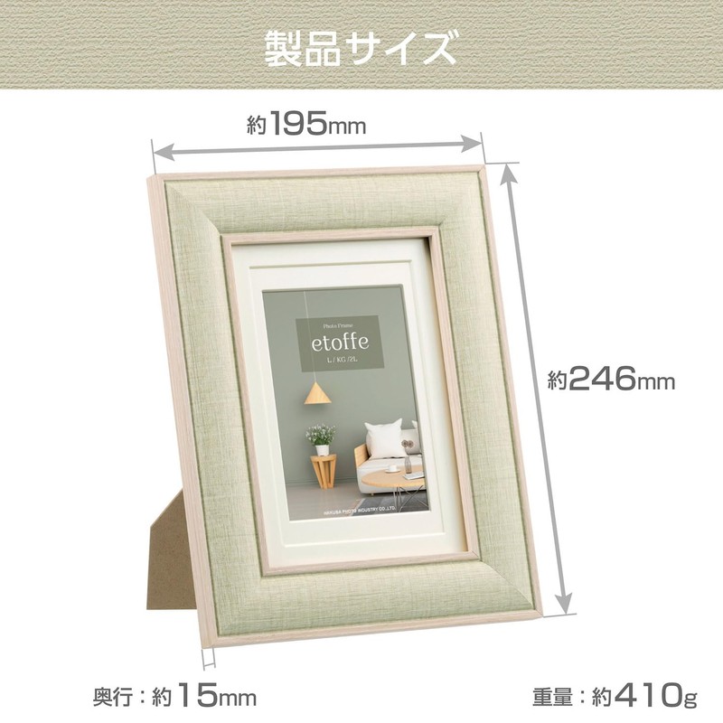 HAKUBA AMZFWETF-GR 4977187004021 Photo Frame, Etoff, L/KG (Postcard), 2L Size, AZ Green, Wooden Picture Frame, Includes Stand and Hanging Strap, 3 Sizes