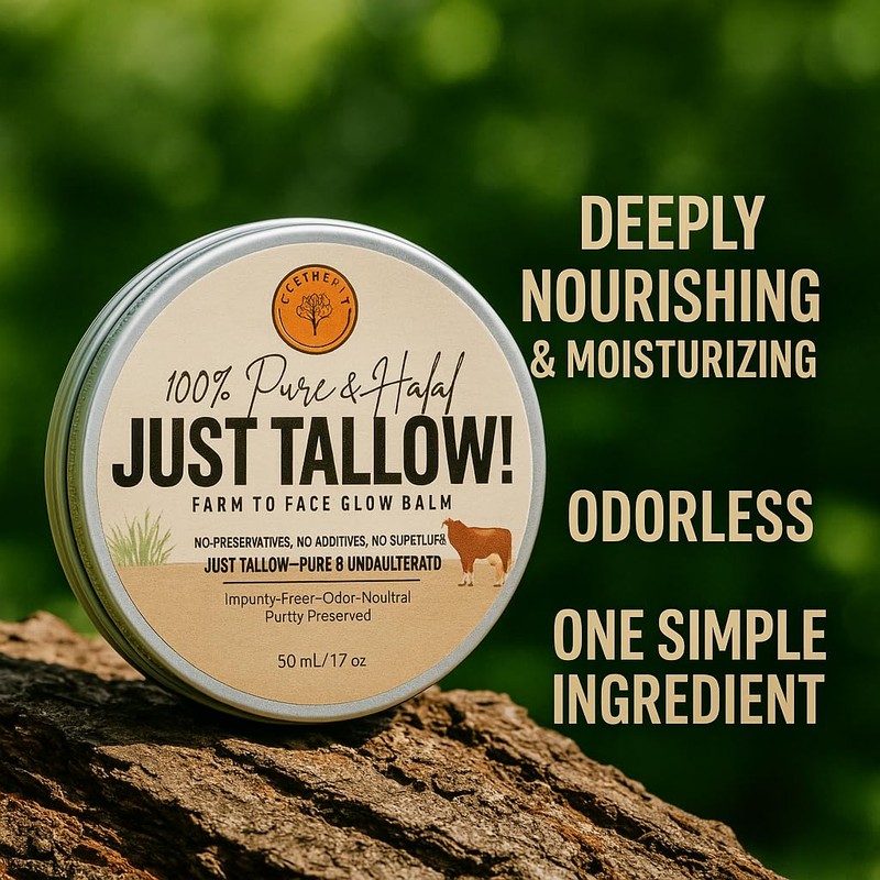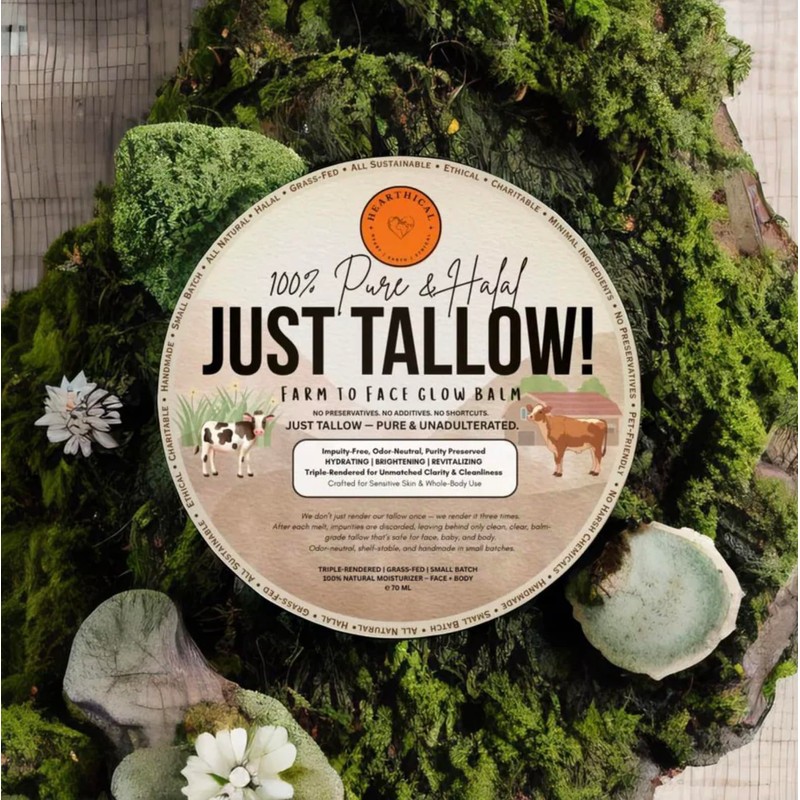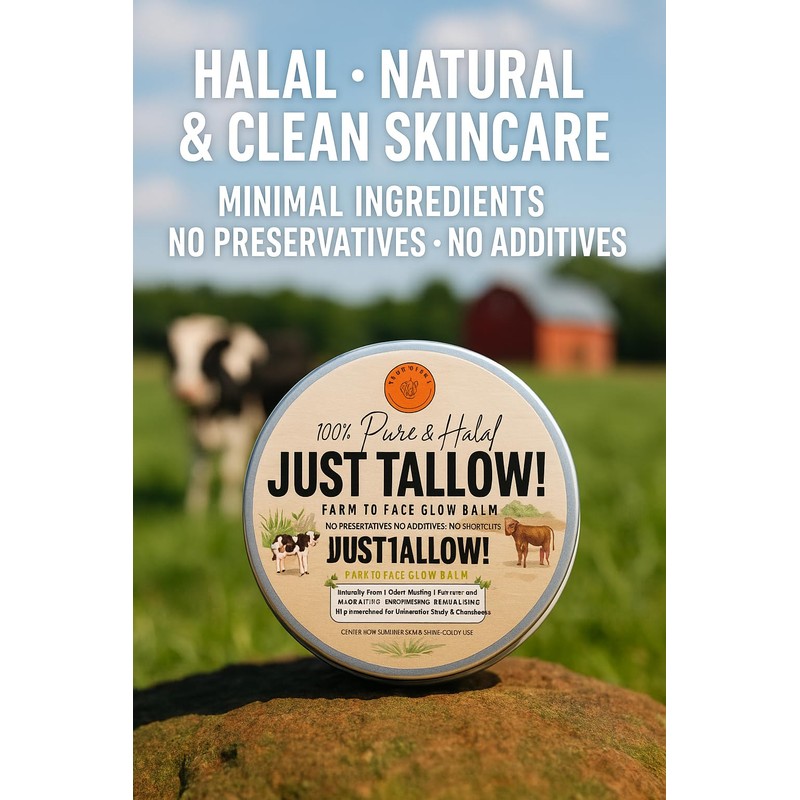 Halal Grass-Fed Triple-Rendered Beef Tallow Balm, 70 g – Moisturizer for Dry, Sensitive Skin • Skin Barrier Repair • Multipurpose Healing Balm