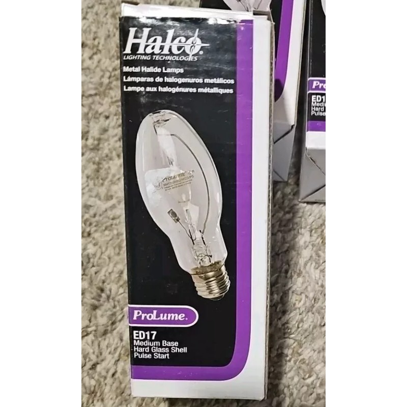 Halco ED17 metal halide lamp. Medium base - pulse start. Requires compatible ballast. New in box. Several available. See pictures.