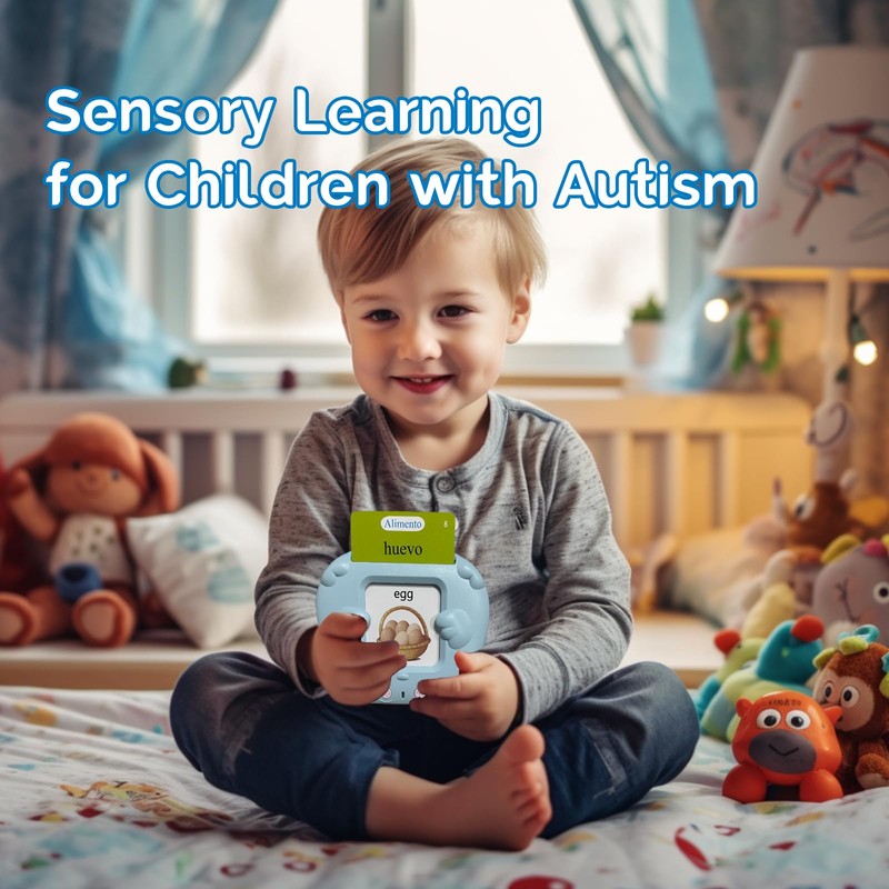 - AUTISM SENSORY TOYS : The talking flash cards can be used as one of speech therapy toys, featuring in its cute bear-shape design, audio sound and images, which lets children relax, improves understanding, memory, focus, communication.