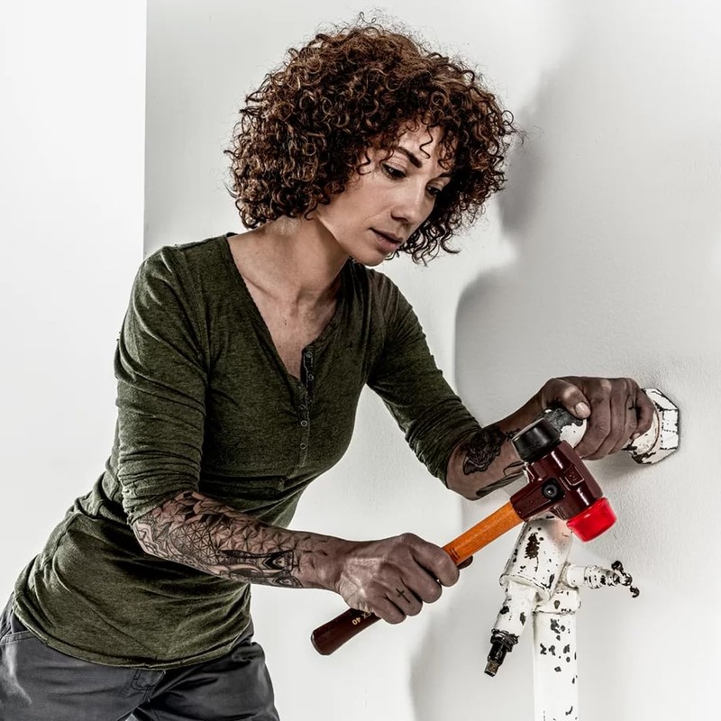 - SIMPLEX soft-face mallet with the insert combination of composite rubber (black, medium hard, impact cushioning, odourless, low-wear) / plastic (red, hard, oil and grease resistant).