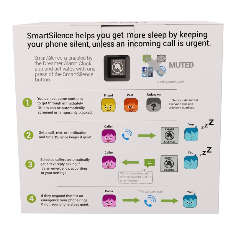 - A Do-Not-Disturb mode protects your sleep with Smart Silence, intelligently blocks less important calls