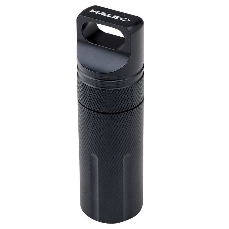 HALEO Portable Small Aluminum Alloy Waterproof Pill Case Supplement Case Black
