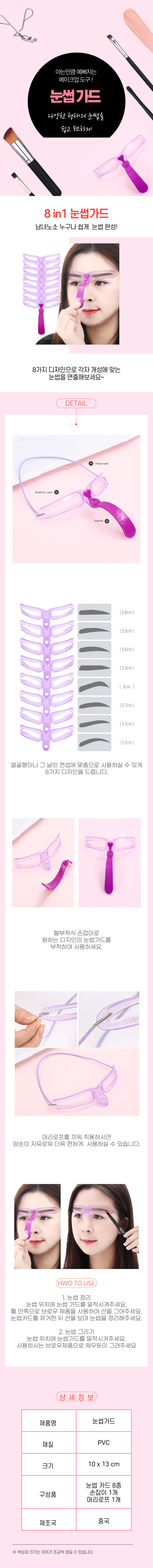 하프클럽/셀러허브_여성트랜드패션일자 눈썹 눈썹틀 그리기 가드 8종