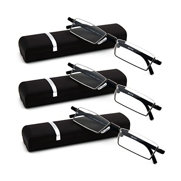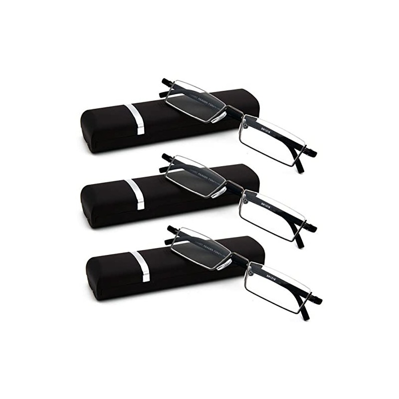 Half Frame Reading Glasses with Portable Case Thin Lightweight Reader Glasses with Spring Hinges for Women and Men(3Pairs 2.5)