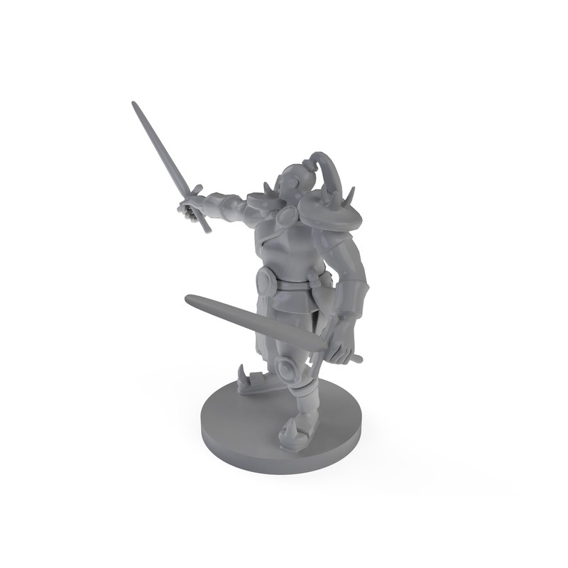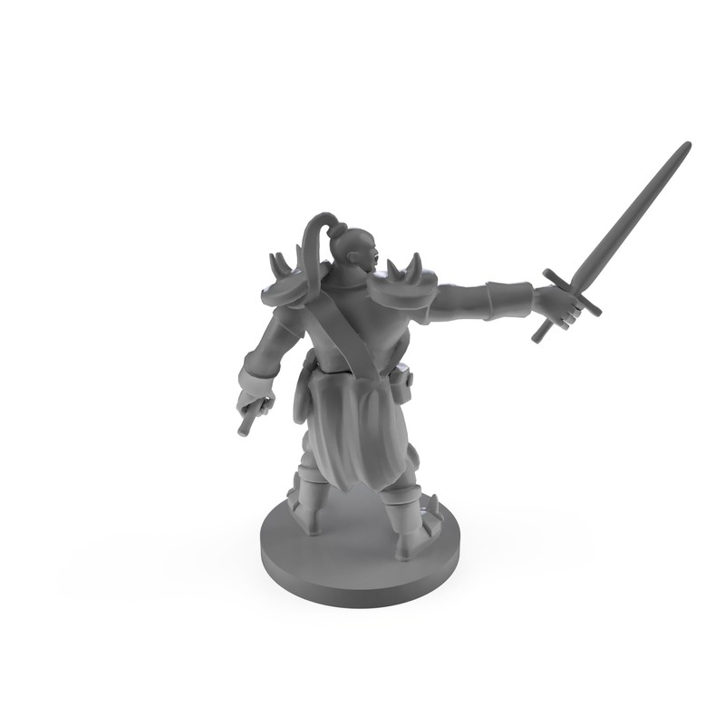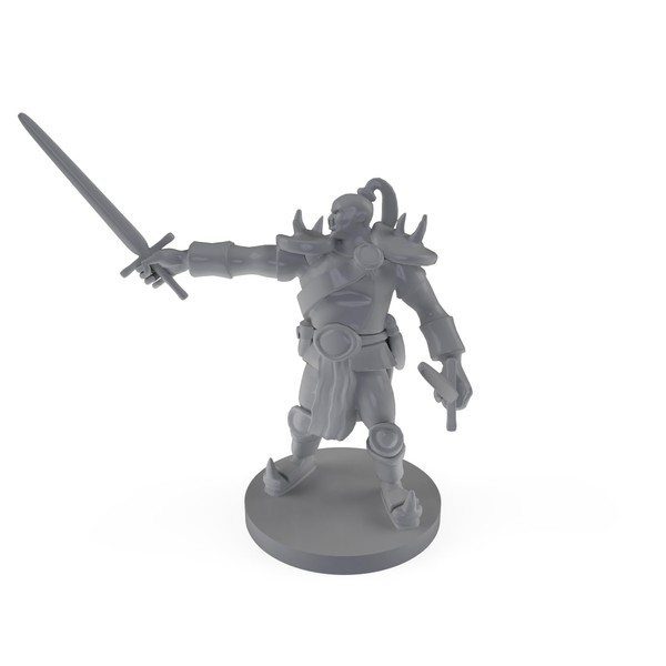 This Is a Half Orc Male Barbarian Two Swords Tabletop DND Gaming Miniature 3d printed in high quality resin. These pieces are great for any tabletop game and add a new depth to your play and characthers! Piece size ranges depending on the piece if its marked medium or larger it will be bigger than a standard piece of 26mm. All Pieces are printed in high quality grey photopolymer resin ensuring no seams, no visible layer lines and an easy to paint game piece!