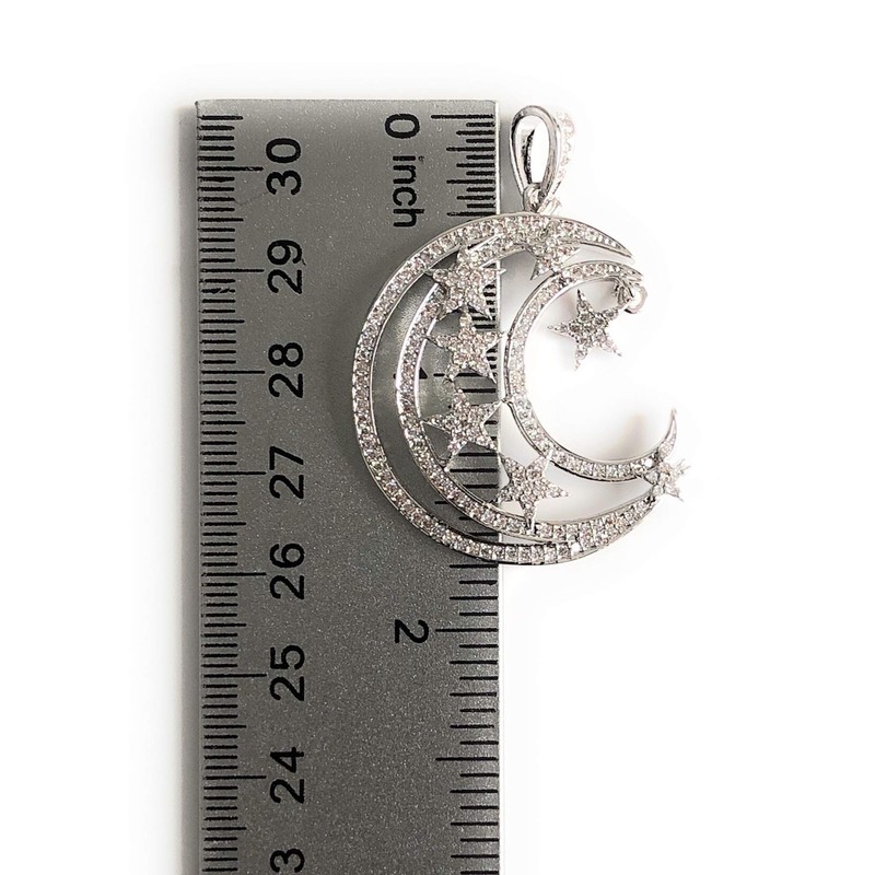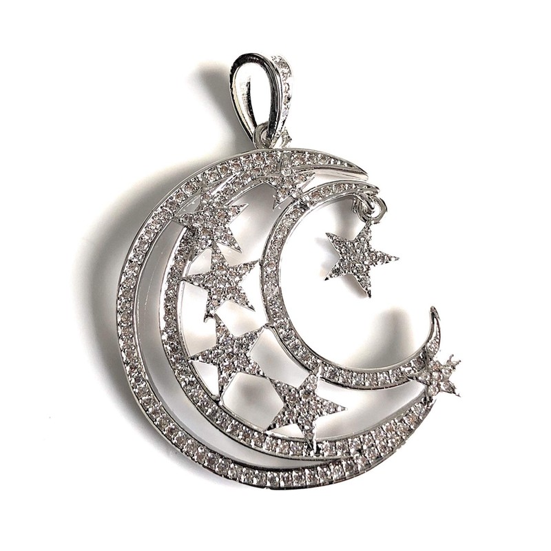 Half Phase Moon and Stars Pendant Necklace 17.5 Inches Chain