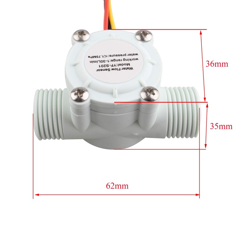 HALJIA YF-S201 1-30L/min Water Flow Meter Hall Meter Sensor Water Control Water Flow Rate Switch Flow Meter Flow Meter G1/2 White