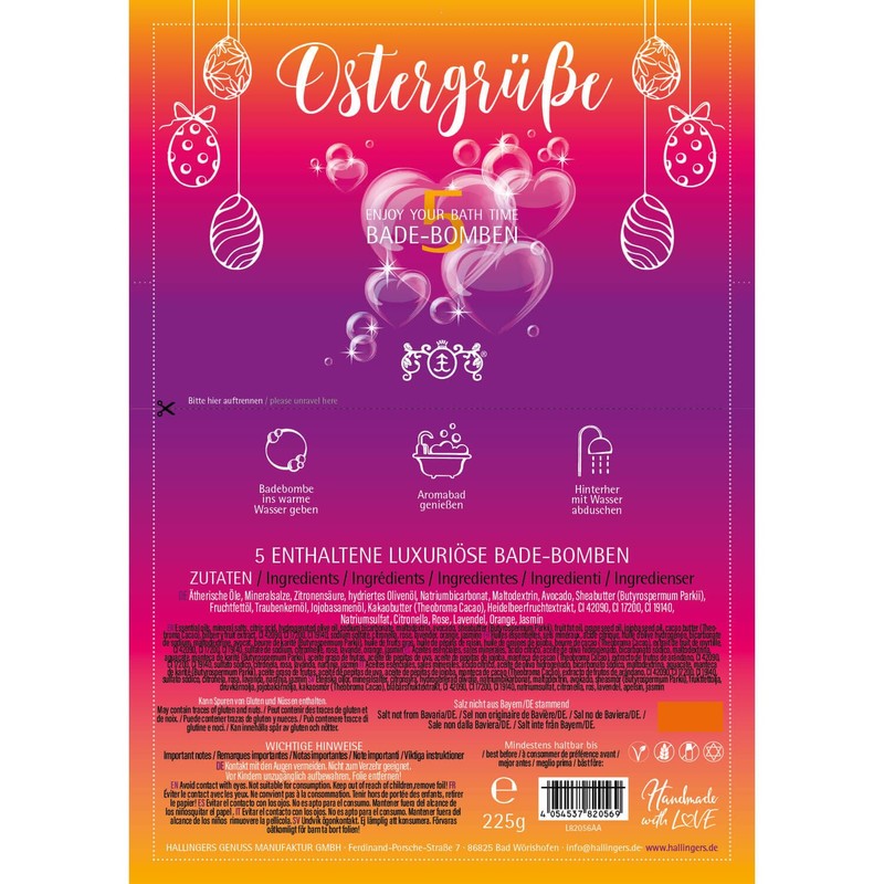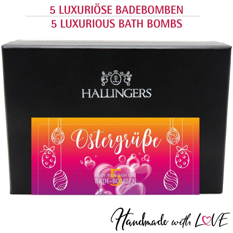 Hallingers Easter Greetings - Pink - For Easter Basket for Easter, 5 Bath Bombs Gift Set, Ready Packed (Set) - Easter Gifts Easter Basket Easter Eggs & Easter Decoration