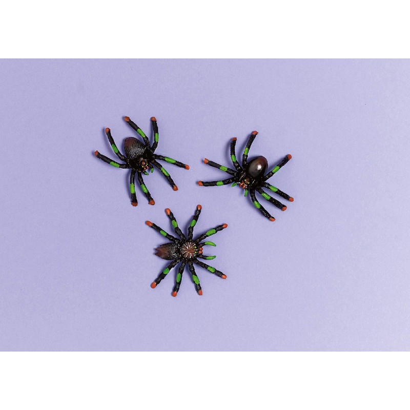 • Black plastic spiders with red and green tentacles