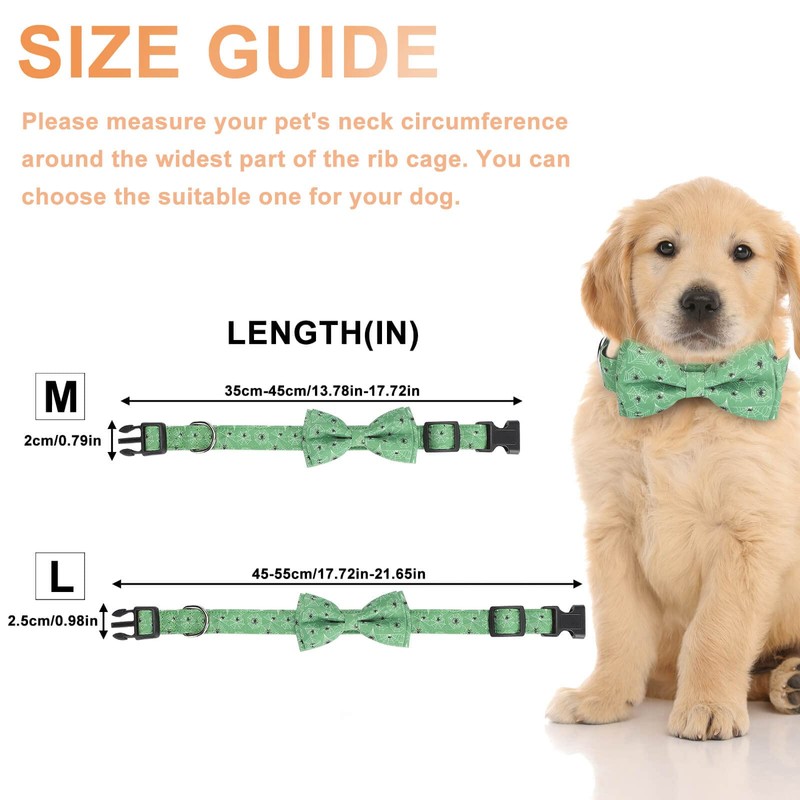 • 🐕【𝑨𝒅𝒋𝒖𝒔𝒕𝒂𝒃𝒍𝒆 𝑵𝒆𝒄𝒌 𝑺𝒊𝒛𝒆】Our dog halloween skull bowtie collar is considerately designed with adjustable collar buckle. Mediun: Neck Girth: 11.81"-17.72", Width: 0.79". Large: Neck Girth: 13.78"-21.65", Width: 0.98". Note: Please remember check your pet's neck girth before purchasing our halloween dog collar large. If you are not sure, please feel free to contact us for advice.