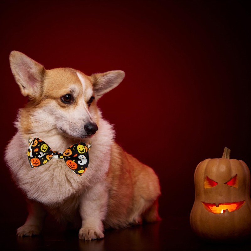 - Unique design: Ghost and Pumpkin pattern Bow tie for pet collar. Made with durable high density polyester webbing, soft, durable and comfortable for most small dogs.