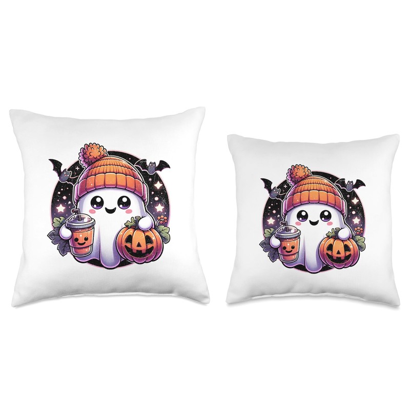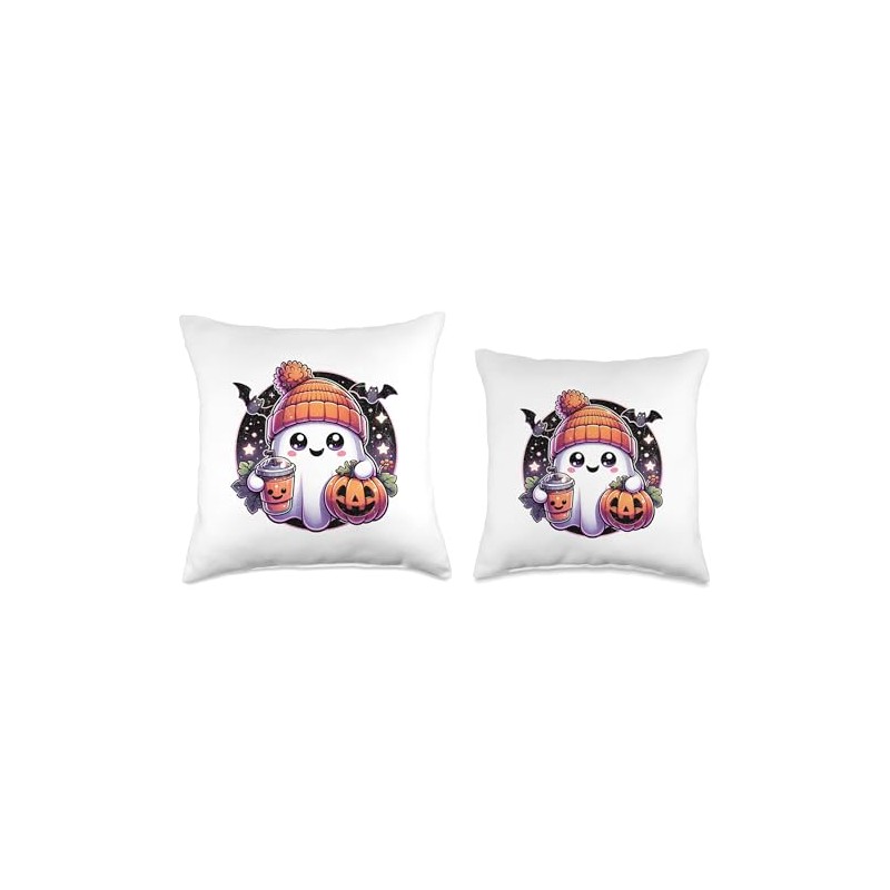 Halloween Ghost Pumpkin Fall Drinks Spooky Beanie Throw Pillow