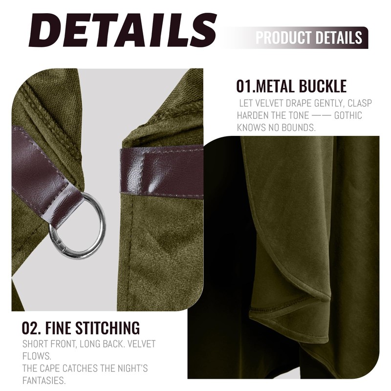 - Ideal Occasions: The hooded cloak for halloween, ren faire, medieval festivals, LARP events, cosplay parties, and stage performances. Great for cultural gatherings,othic fantasy-themed celebrations or fantasy-themed events