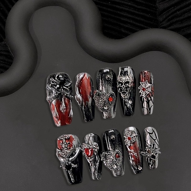 - Spooktacular Designs: Our Halloween press on nails feature unique goth styles, complete with 3D spider web, sugar skull, and heart designs, giving you the perfect spooky look for any Halloween celebration