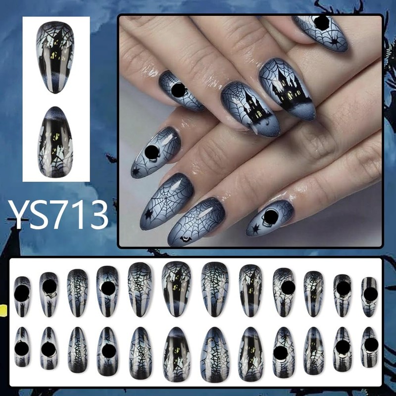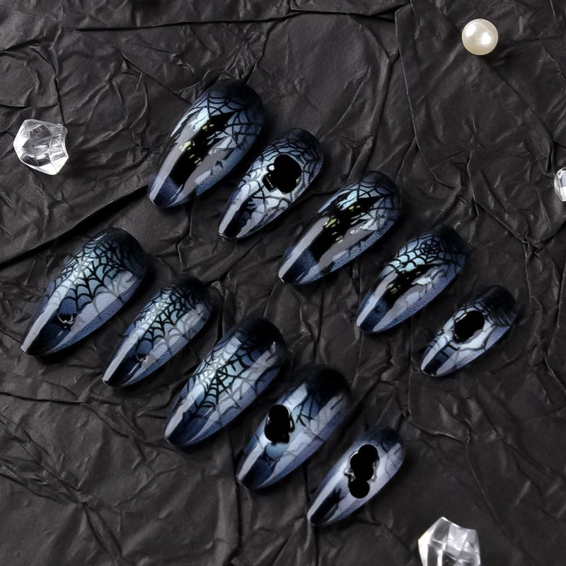 - Easy to Use:Choose the suitable cobweb stick on nails, polish the nail bed, paste the jelly glue, press the fashion nail art in 30 seconds, and create the nail art that girls like. If the goth false nails size is not suitable, it can be polished to the size of the nail cap with a friction tool. They are easy to apply and remove. No special nail polish remover is required; only hot water is needed