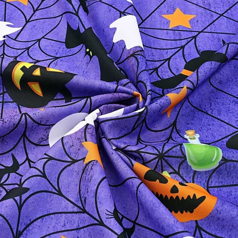 - ESSENTIALS FOR HALLOWEEN: Delicate pumpkin, bat, ghost and spider web pattern print on this table cloth is cute and beautiful, match with the purple background, it will fill your home with a Halloween atmosphere and it is the best tablecloth fit for Halloween!