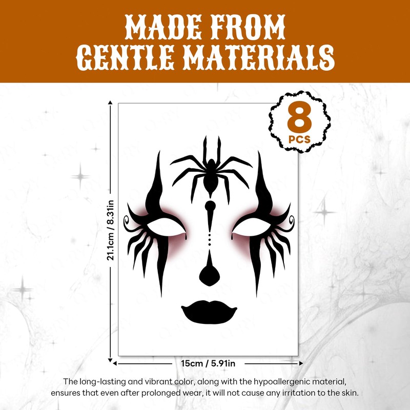 • Authentic Halloween Design: You will receive 8 temporary tattoo stickers. This Halloween temporary face tattoo sticker features classic gothic elements, creating a spooky and realistic visual effect that will make you the center of attention on Halloween.