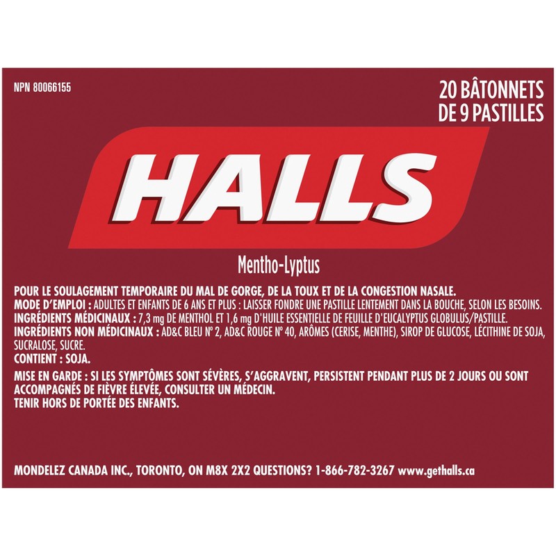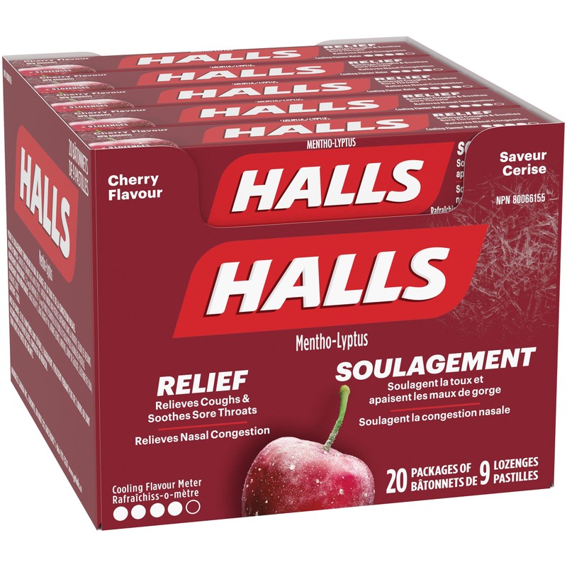 Halls Cherry Cough Drops 9 count, 20 Packs