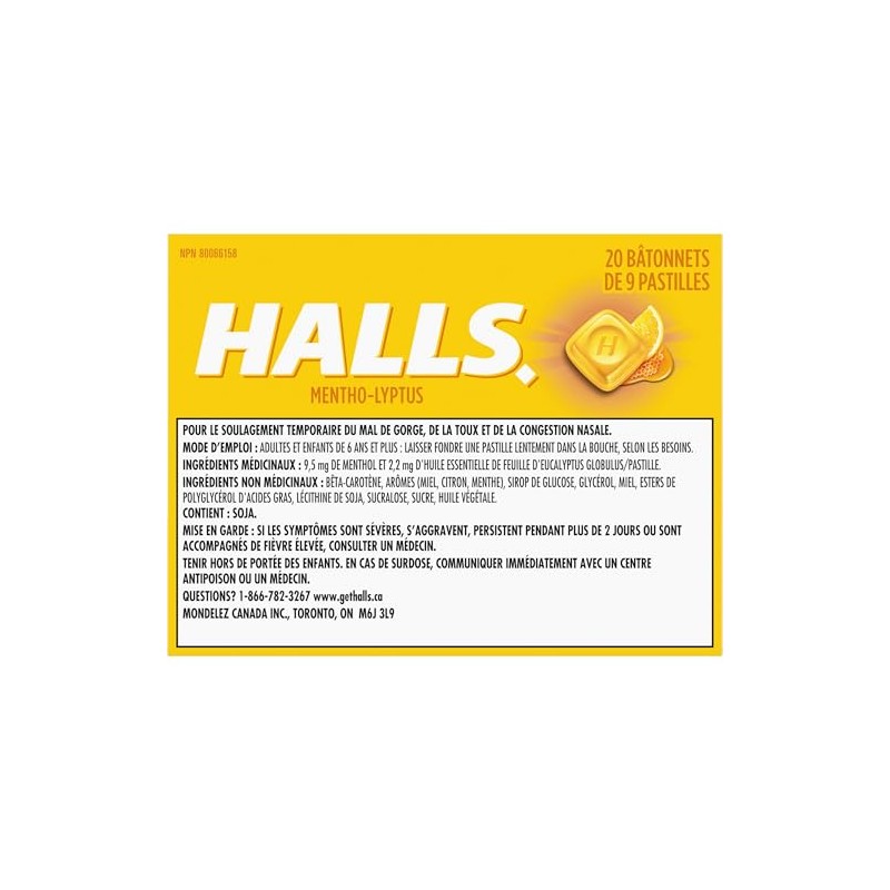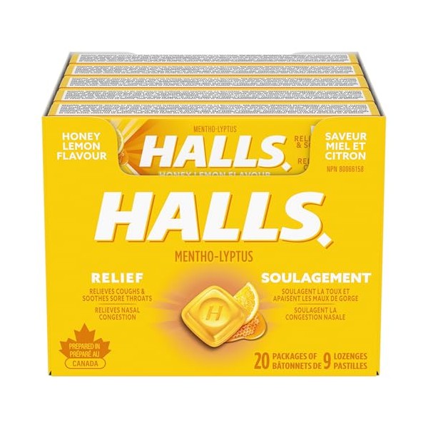Halls Halls Honey Lemon Cough Drops 9 count, 20 Packs