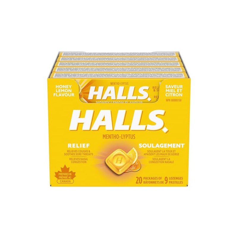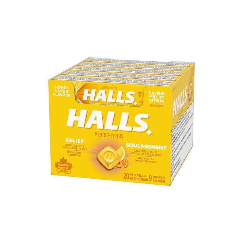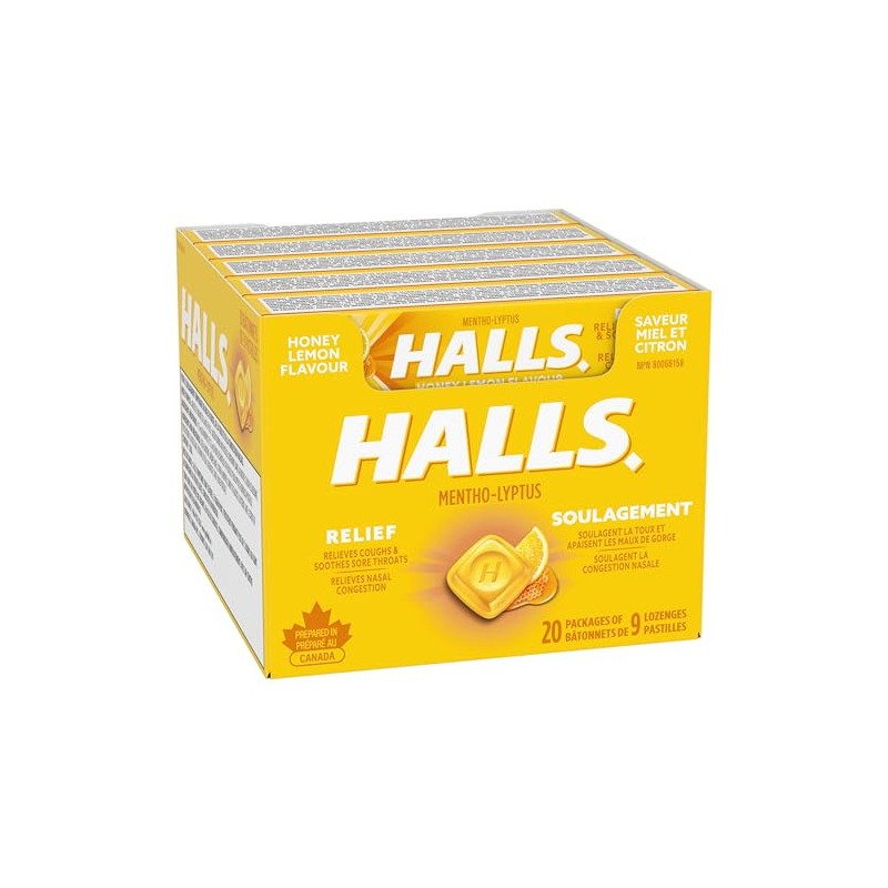 Halls Honey Lemon Cough Drops 9 count, 20 Packs