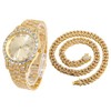 Halukakah Men's Diamond Gold Watch, 18 K Real Gold-Plated/Platinum White, 42 mm Round Design, Bracelet with Hand-set Laboratory Diamonds (24 cm), Cuban Link Chain (20 + 45 cm Necklace Bracelet) with