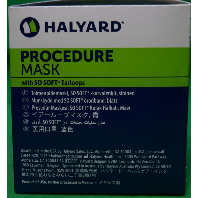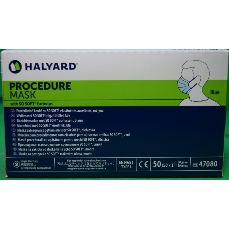 HALYARD Single-Use, Disposable Earloop Medical Mask, Designed For Short-Term Wear, Pleat-Style with Earloops, Blue, 47080 (Box of 50)